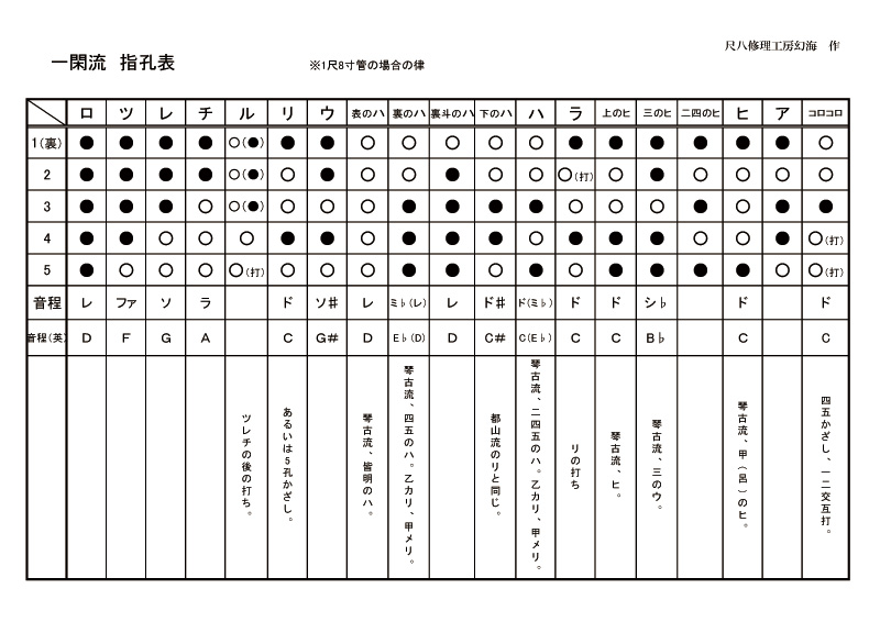 ※一閑流 指孔表が必要な方はお問い合せからご連絡くだされば、PDFかJPEG形式のファイルを差し上げます。
