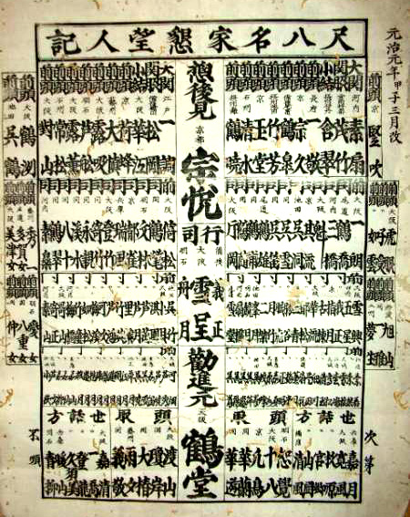 元治元年(1864年)に作られた「尺八名家懇望人記」という番付には宗悦流を中心に関西・関東の当時の名人達の名前が列挙されている。それを後年改めたものだと思われる。※今日有名な、樋口対山・勝浦正山・中尾都山らの一世代前(師匠世代)の名人達が中心。また、この番付は本曲の序列ではなく、外曲の優劣であると思われる。