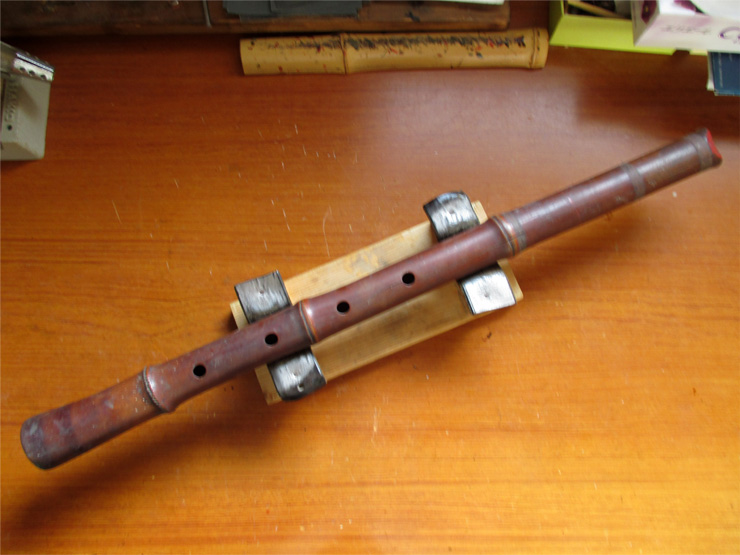 割れを閉じた後に律と鳴り具合を確認してみたところ、乙ロ以外の指孔が総じて高い。というよりは、全閉音のみが低すぎるというべきだろうか。また管内が狭すぎて、甲音が非常に鳴りづらく、鳴らせてもか細い。この辺りは管内を少し触って調整することになるだろう。乙音の独特な篭った音色は中々良い。