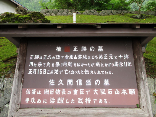 奈良県十津川村武蔵にある楠木正勝の墓所。楠正勝の墓所といわれている場所は、この他に大阪市東淀川区の定専坊、茨城県の筑波山神社(古通寺)とあるが、当地が一番有力ではなかろうかと云われている。