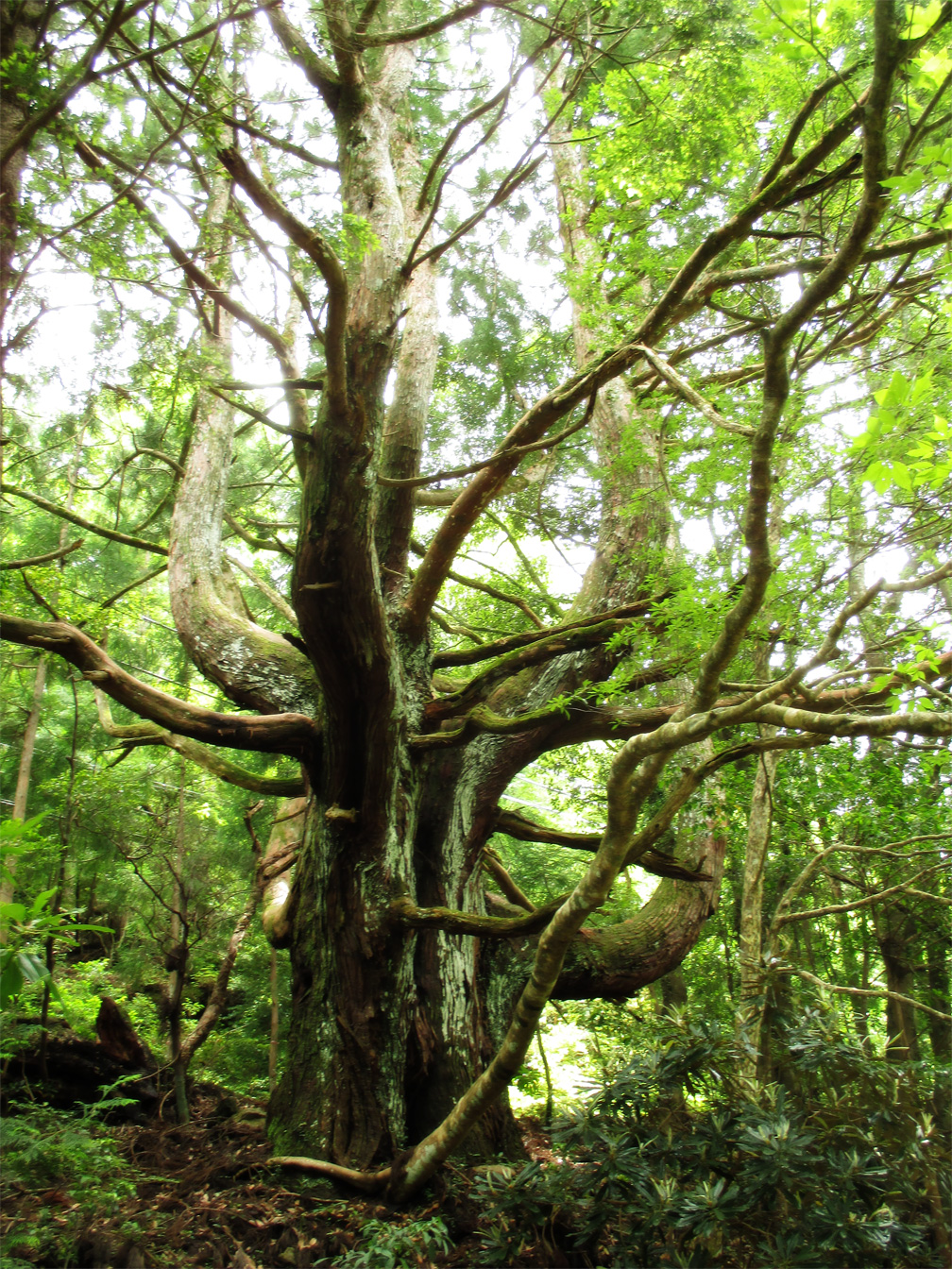 奈良県十津川村の道路わきにある無名の巨樹。その圧倒的存在感に思わず車を止めて見入ってしまった。その姿はまるで、大地に刺さった天の沼鋒か、あるいは天に逆巻く鬼の爪か。この巨樹は、十津川村、もしくは奈良県の文化財に指定するべきだと思う。