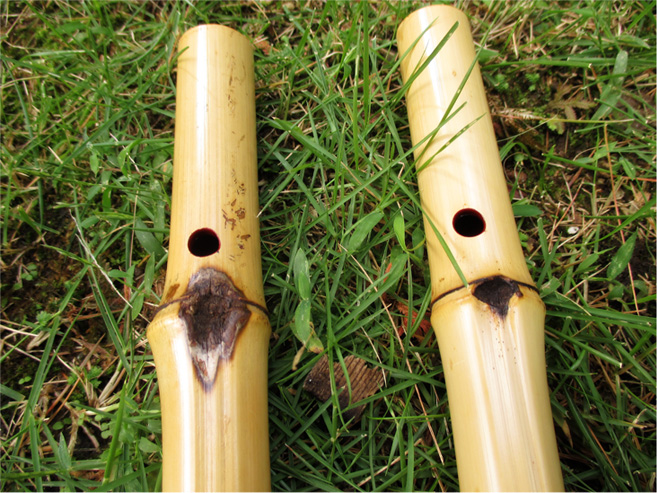壱越調(D、レ)の一節切です。材質は真竹で、管内は赤漆。 価格は、各2万円。別にオーダーメイドも承っています。また一節切用尺八袋もオーダー(3800円)で製作することも可能です。 ※画像クリックで拡大します→