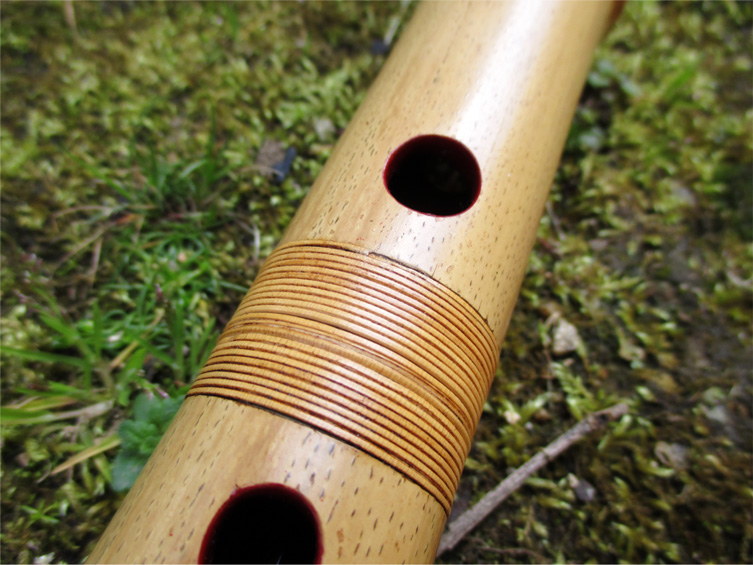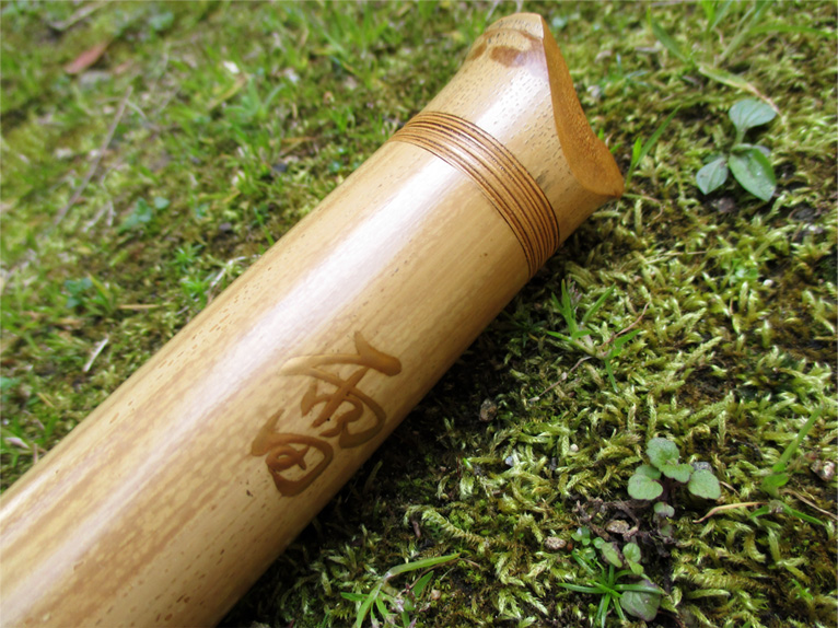 一尺二寸管(in G♯)、管銘を「雷(いかずち)」。管内は、通常の一尺二寸と異なり非常に広く作られている(これは四郎管の広作りの概念を一尺二寸に応用したもの)。あまり一般的な寸法ではないので、歌口に角は入れていない。蒔絵は純金の平粉。銘の由来は、一尺二寸のクセにまるで雷が轟くが如く、驚くほど鳴ることから。 →画像クリックで拡大します。