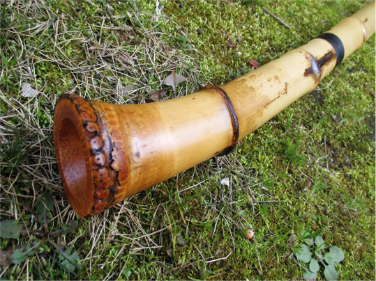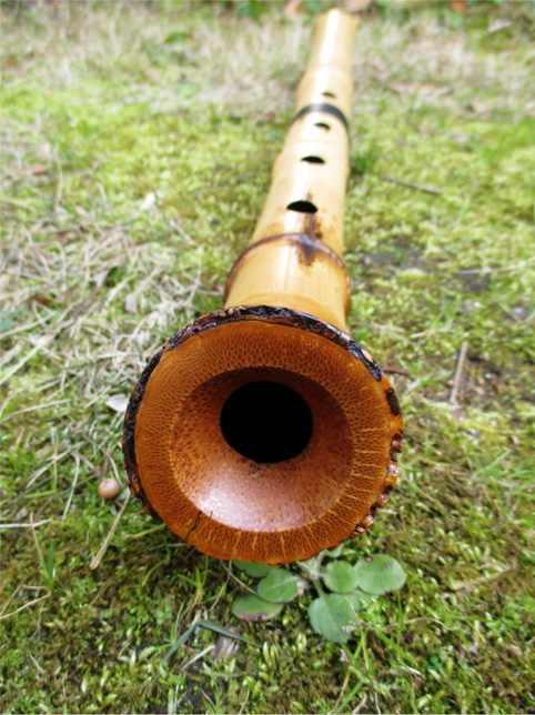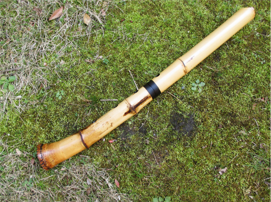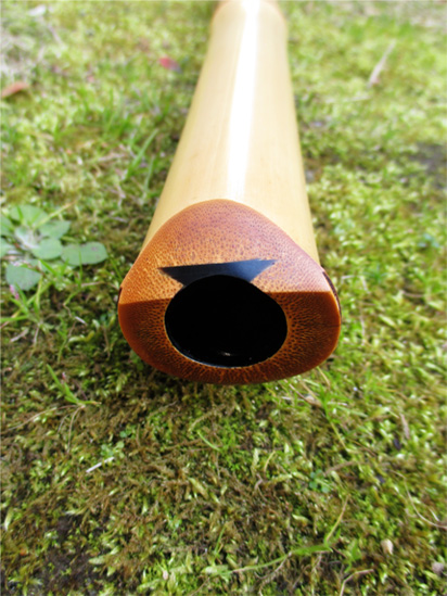 一尺八寸管(in D)。管内は、現代の一尺八寸と異なり、山口四郎の好みを模した広作りとなっている。また同様に管内の漆の色も四郎好みの黒漆(単なる黒ではなくこげ茶色が重なって黒く見えるような漆の色合い)にしており、中継ぎは昔の琴古流で好まれた漆巻き(ただし滑り止めと私の好みでやや石目気味)にしている。歌口は水牛の角。反りのある曲管。四郎好みの広作りを442Hzにする場合、どうしても管尻がラッパ状になってしまうのは四郎管と共通。
