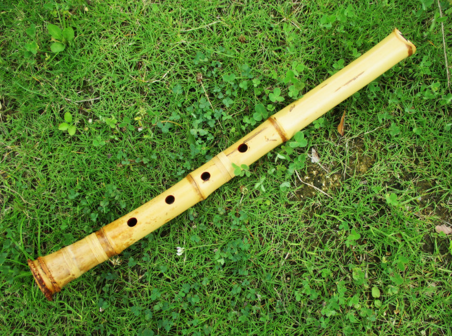 律は442Hzで一尺八寸管(in D、55cm)。管内赤漆。歌口は琴古型で黒水牛角。中継ぎはシンプルに籐巻き。広作り。
