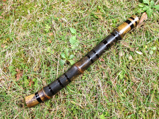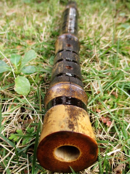 こちらは天吹としては少し長めの30cmほど、ただ天吹はもともと独奏楽器なので、問題はありません。全体的に古武士のような黒くいかめしい姿をしていますが、美しい反りもあり、音色は軽妙でありながら深みがあります。