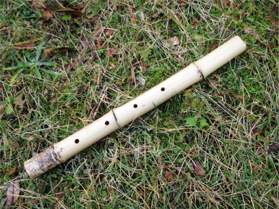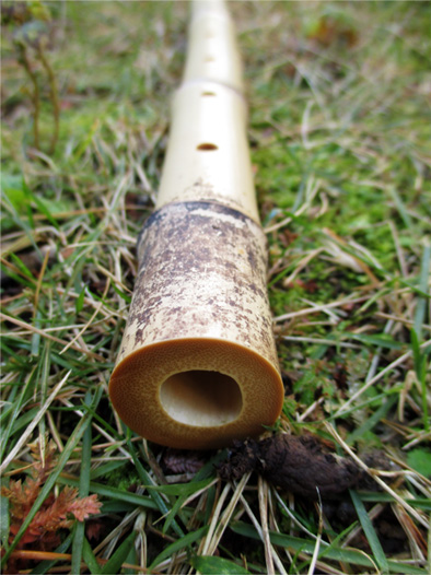 こちらは天吹は30.6cmほど。天吹らしい音色がしながらも、柔らかい温かみのある音色がします。裏孔は、今は廃れてしまったもう一つの天吹の製作ルーツにのっとり、現行よりも低い位置に開けています。音程などには現行のものと大きな違いはありませんが、高音部や天吹独特の指を抜く動作などはやや音律が低くなり、また違った雰囲気になります。